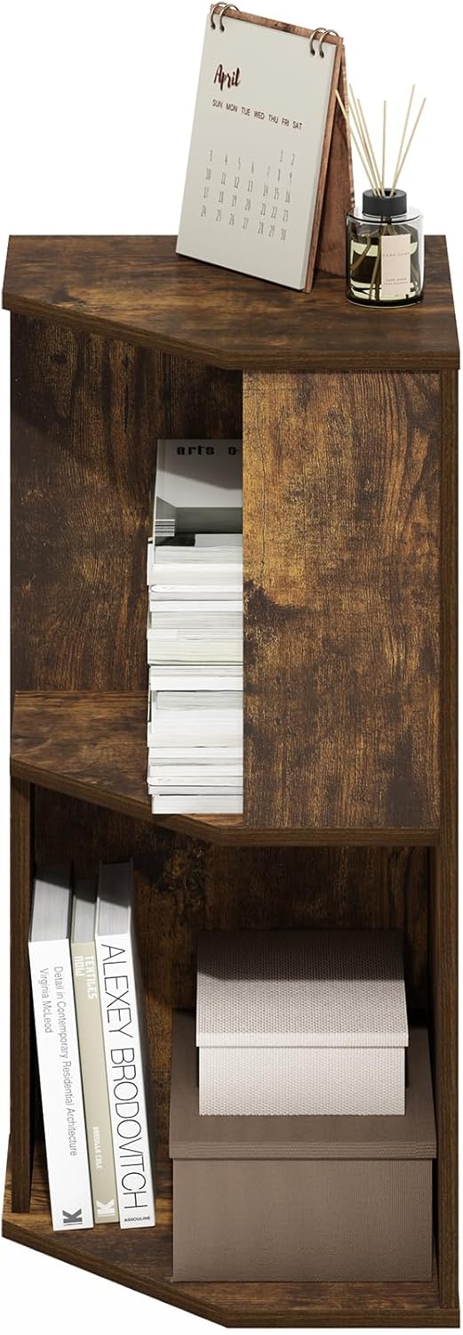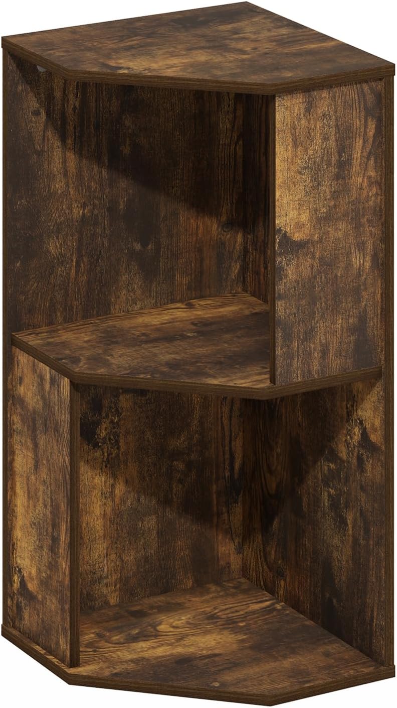 Furinno Econ 2-Tier Freestanding Corner Shelf Bookcase, Bookshelf, Amber Pine
