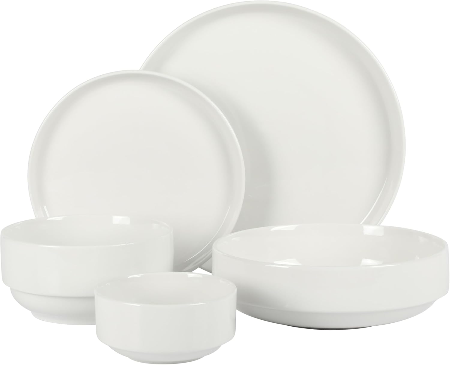 Gibson Home Rothernberg Stackable 40 Piece, Service for 8, White Porcelain Plates and Bowls Set